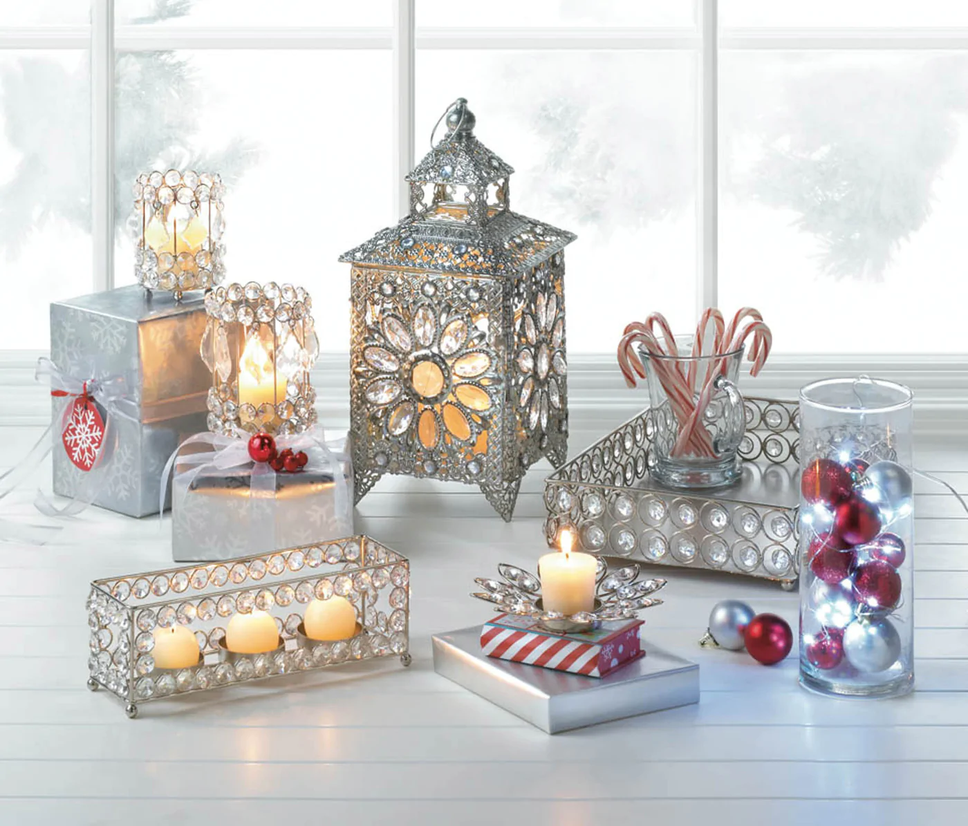 • Live like royalty! Enjoy the sparkle of all the riches in the kingdom that are gathered  in this stunning tabletop candle lantern. Faceted jewels set inside luxurious silver-tone filigree dazzle when a candle of your choice is lit inside. There's nothing common about this enchanting treasure!