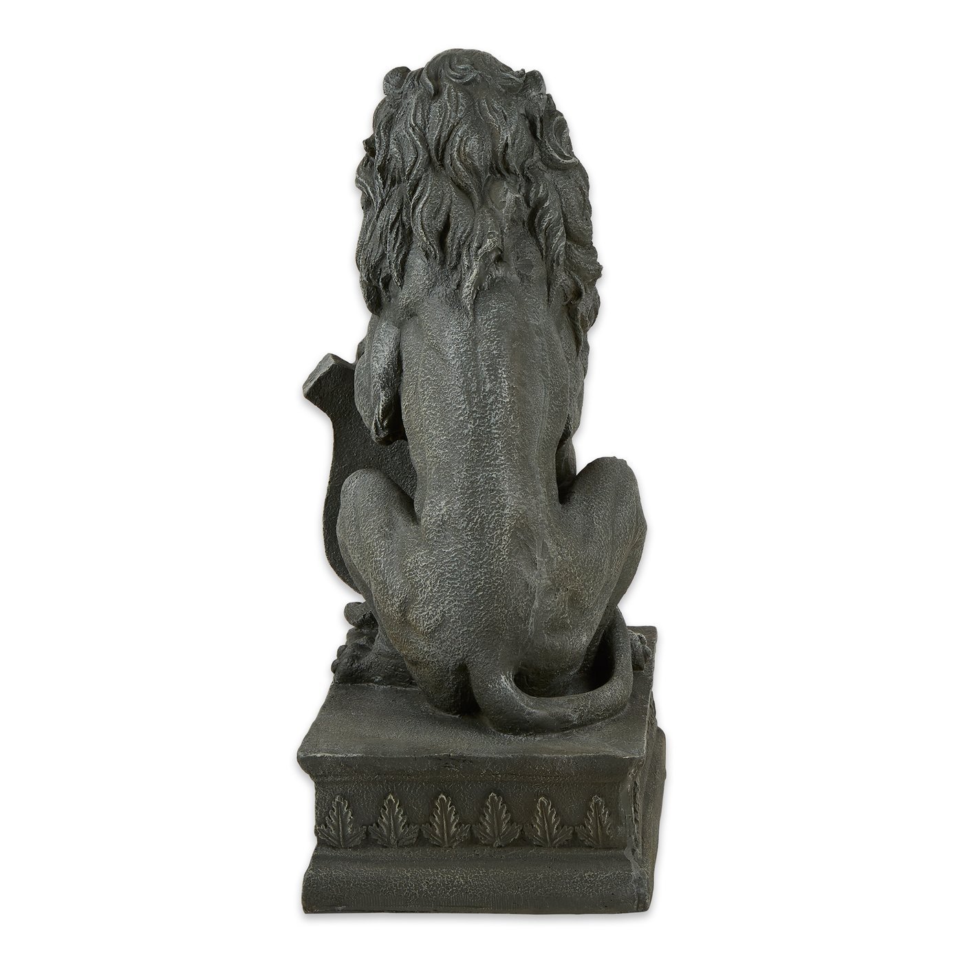 • With his mighty paw placed atop a crested shield, a regal lion surveys all who approach the door to your “castle.” Inspired by the centuries-old stone carvings found in castles and cathedrals throughout Europe, this impressive statue makes a bold historical statement and lends distinction to your entryway or garden!