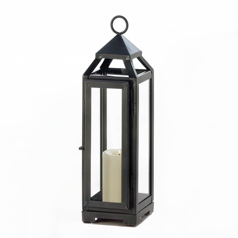 Simply stunning! This sleek candle lantern is a gorgeous way to light up any room in your home, indoors or outside. The dark gray iron framework and clear glass panels let the light from a single pillar candle shine bright. Candle not included. Weight 1.4 pounds. 3.62" x 4" x 12.8". Iron, Glass. UPC Number: 849179033255.