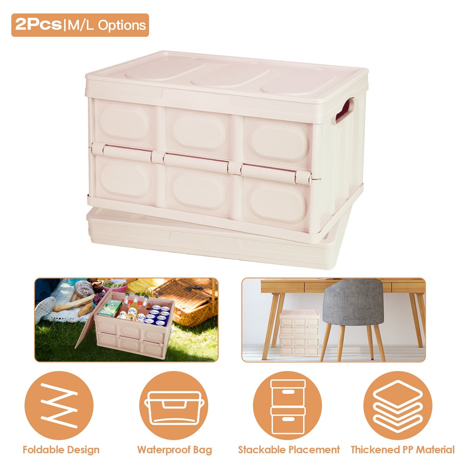 Home > 2Pcs 56L Collapsible Storage Bins With Dustproof Lid Waterproof Interior Bag Handle Stackable Storage Box Container Utility Organizer Crate For Campin