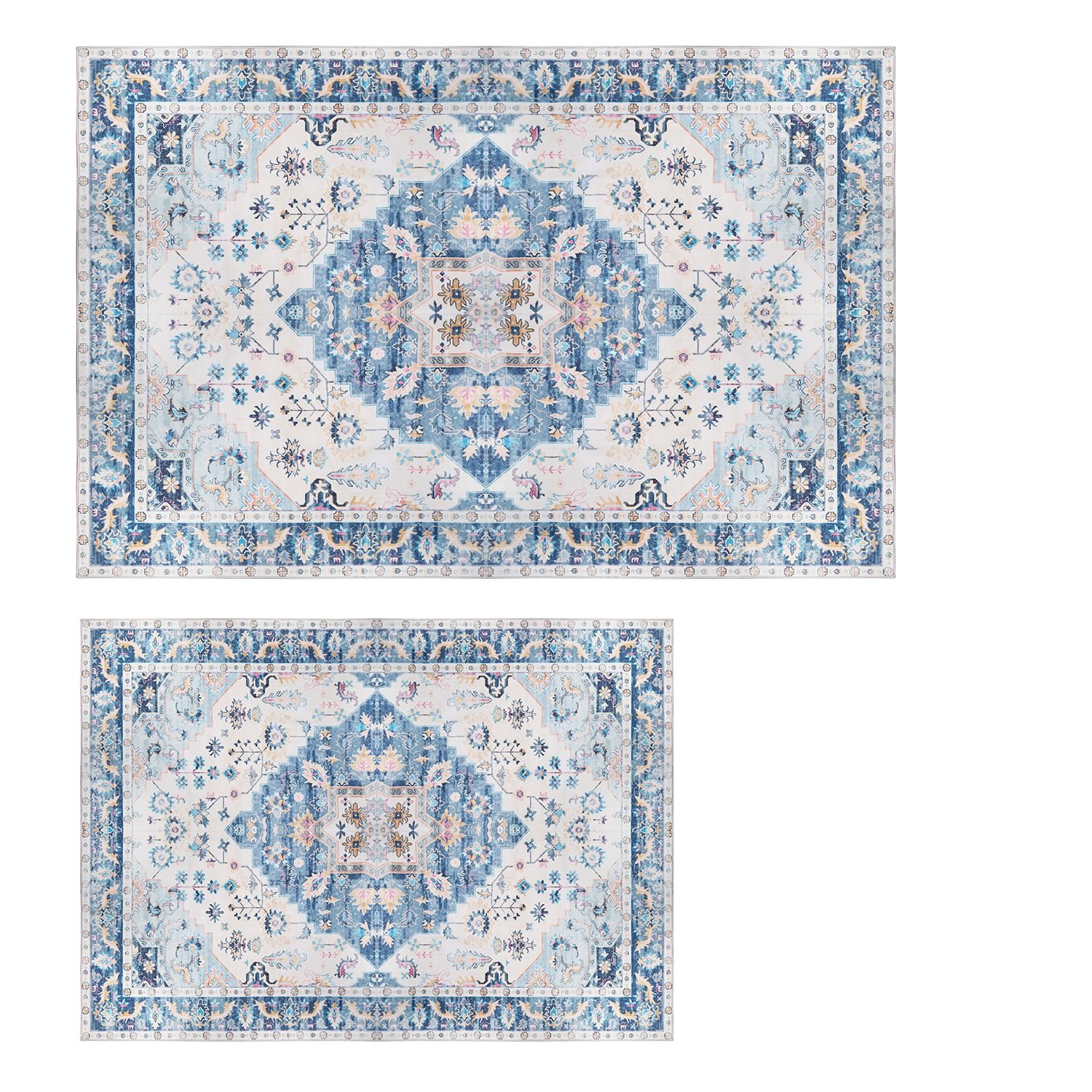 Our area rug with a delicate vintage print design and tribal elements, providing an elegant and timeless looks for your living room and adding character and bright color to your home. Great to place it in entryway, under the table, bed, or other furniture. The surface made of 350G faux cashmere is super soft, and comfortable to touch. Great to keep you warm and cozy while walking on cold floors. The bottom made of TPR texture is anti-slip and can effectively ensure stable placement and max safety. Waterproof surface makes it easy to wipe clean with a damp cloth after spilling. It's also machine washable for easy and quick cleaning. Simply fold it down for space-saving storage when not in use or change them to different styles to decorate your space. We provide you with 3 types of pattern and 2 sizes to fit your different needs!