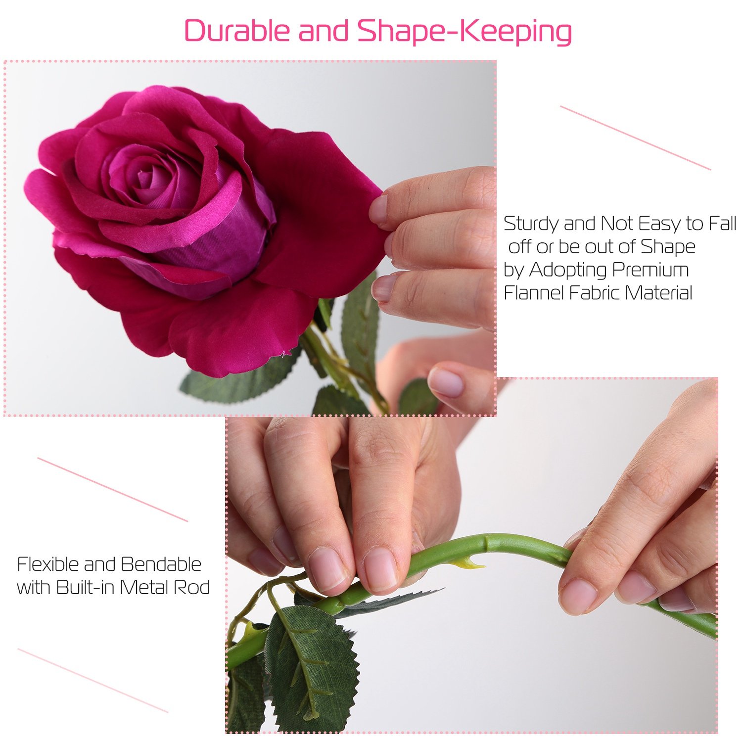 Made from eco-friendly flannel fabric material, our artificial rose is sturdy, durable and not easy to fall off or be out of shape. And adopting premium stimulation process, from the petal to the stem, our artificial rose naturally looks like real rose. Additionally, coming with 10 Pcs, our artificial allows you to variously decorate your home, office or any place you want, our artificial rose not only can decorate your home but also your mood. Have a nice day!