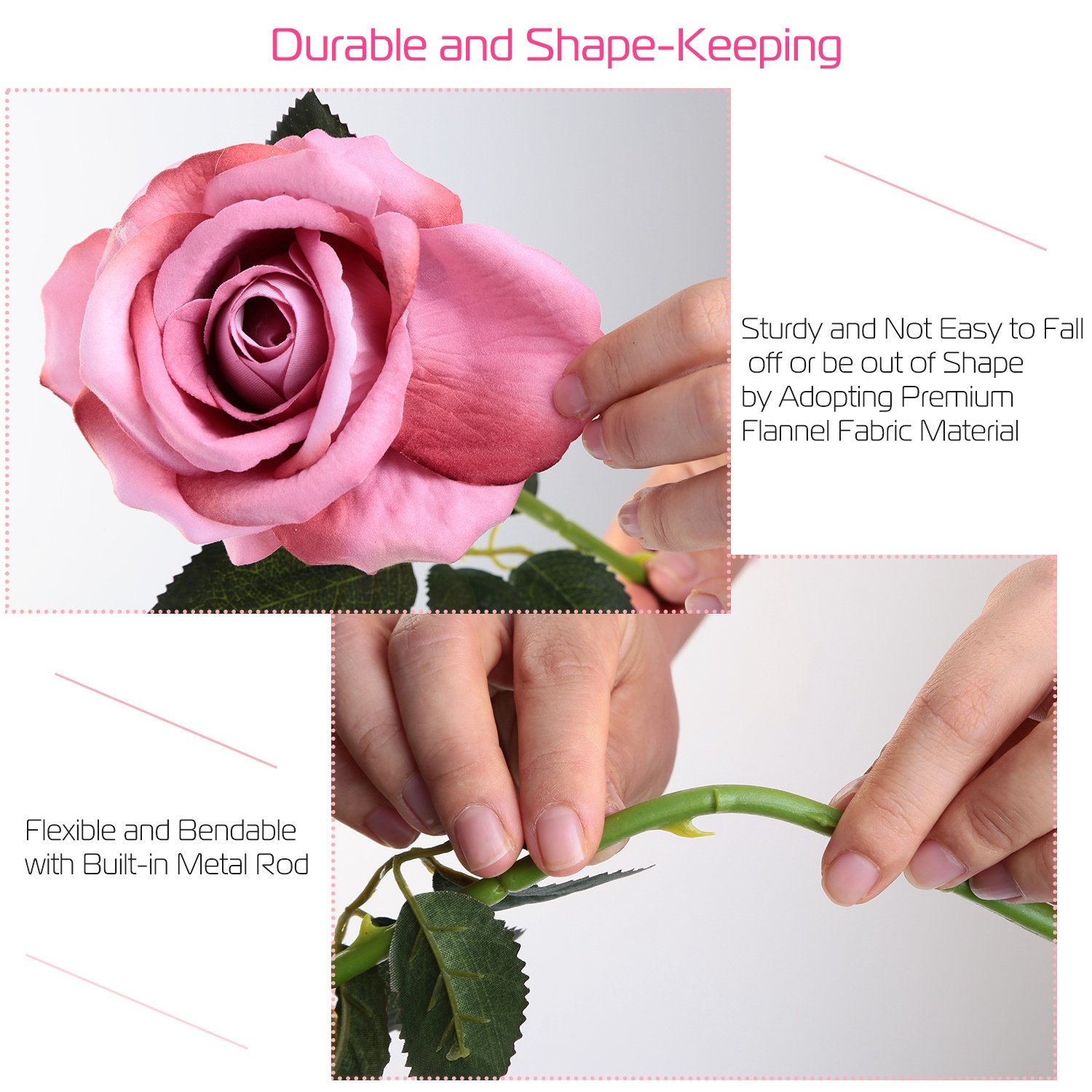 Made from eco-friendly flannel fabric material, our artificial rose is sturdy, durable and not easy to fall off or be out of shape. And adopting premium stimulation process, from the petal to the stem, our artificial rose naturally looks like real rose. Additionally, coming with 10 Pcs, our artificial allows you to variously decorate your home, office or any place you want, our artificial rose not only can decorate your home but also your mood. Have a nice day!