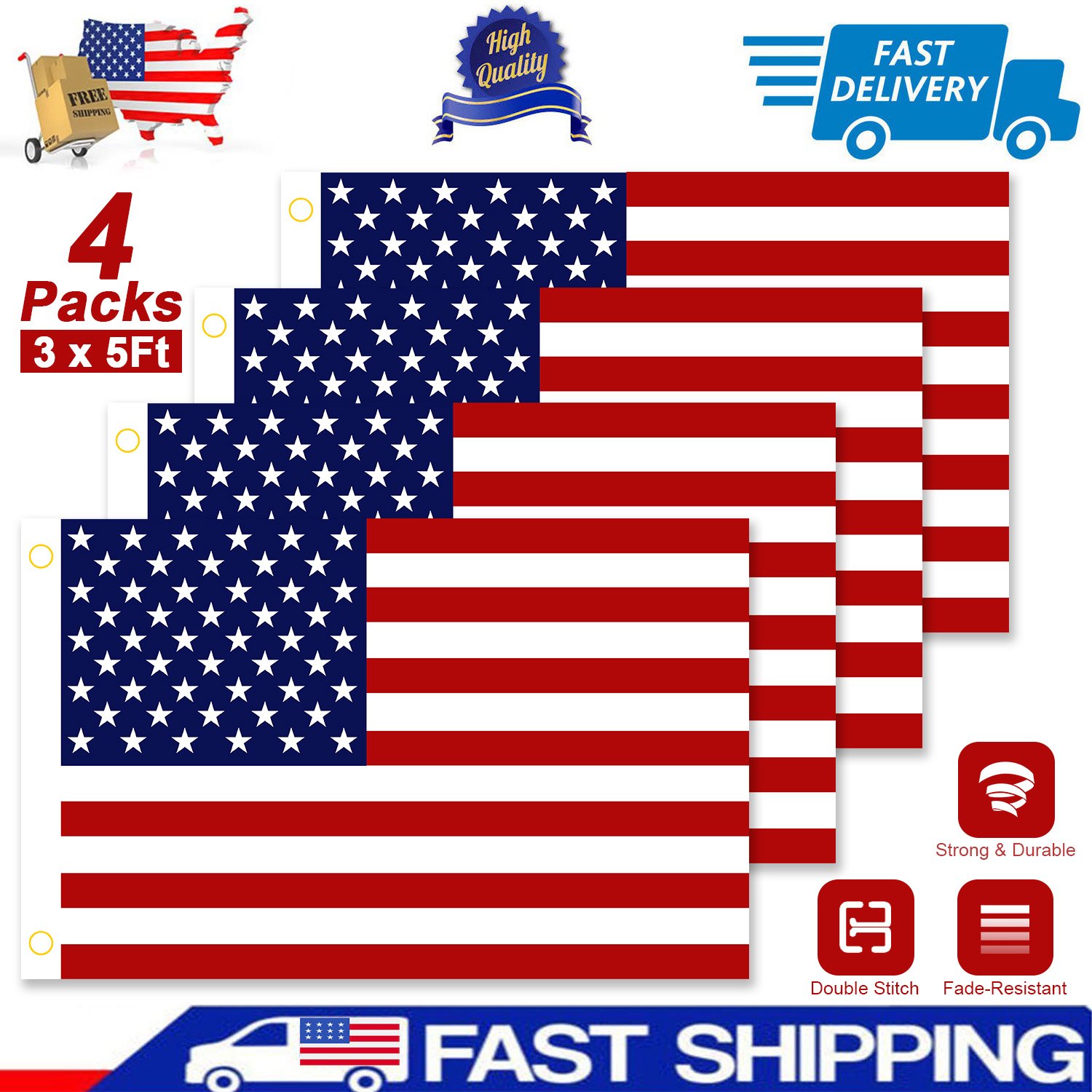 4 Pcs 3 x 5 Ft American US Flags Vivid Color and UV Fade Resistant Canvas Header Double Stitched with Brass Grommets for Indoor Outdoor