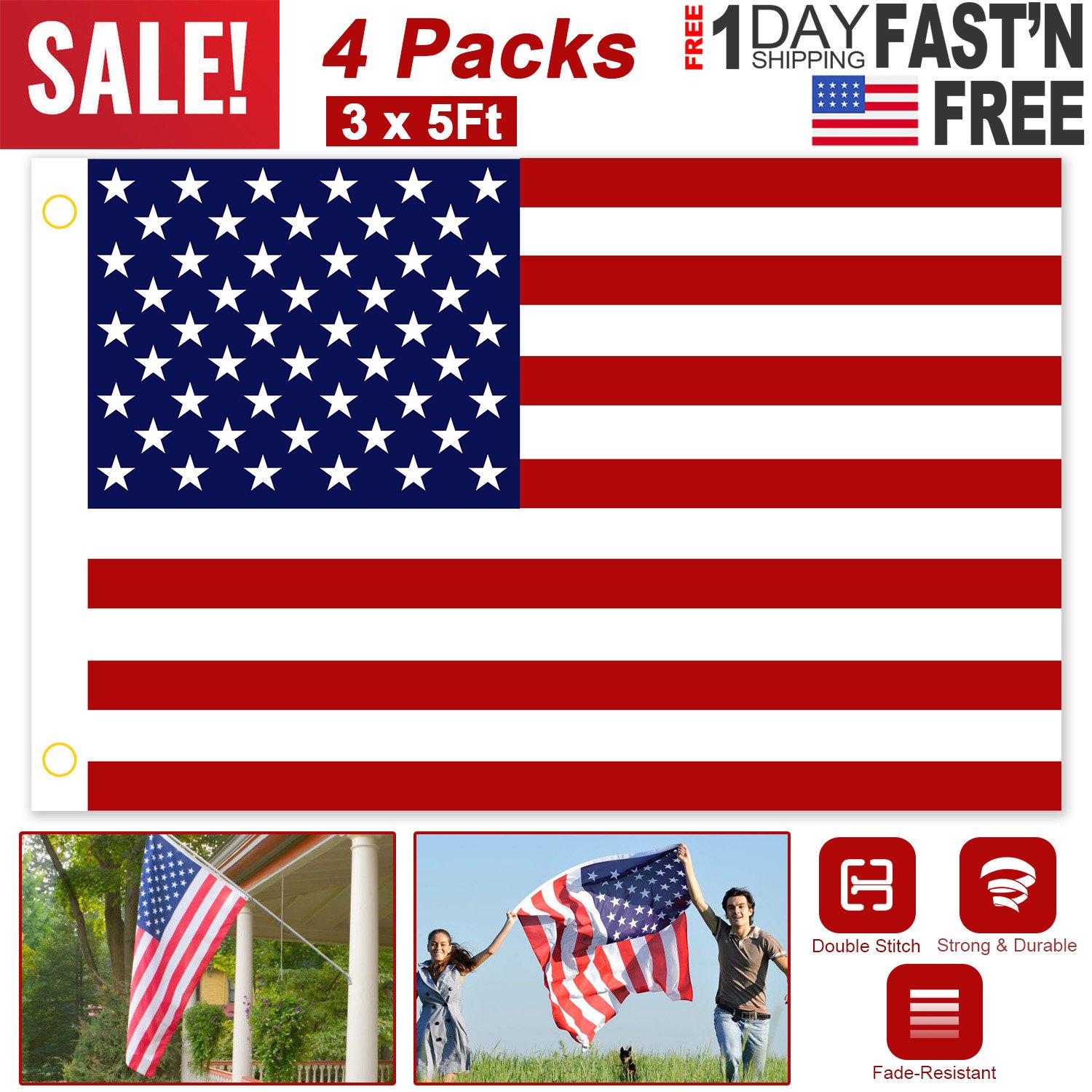 Home > 4 Pcs 3 x 5 Ft American US Flags Vivid Color and UV Fade Resistant Canvas Header Double Stitched with Brass Grommets for Indoor Outdoor