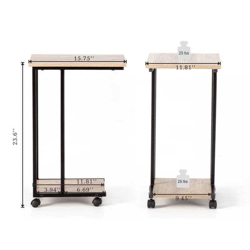 Modern Industrial Style Metal Wood TV Tray Bedside Table with Removable Casters