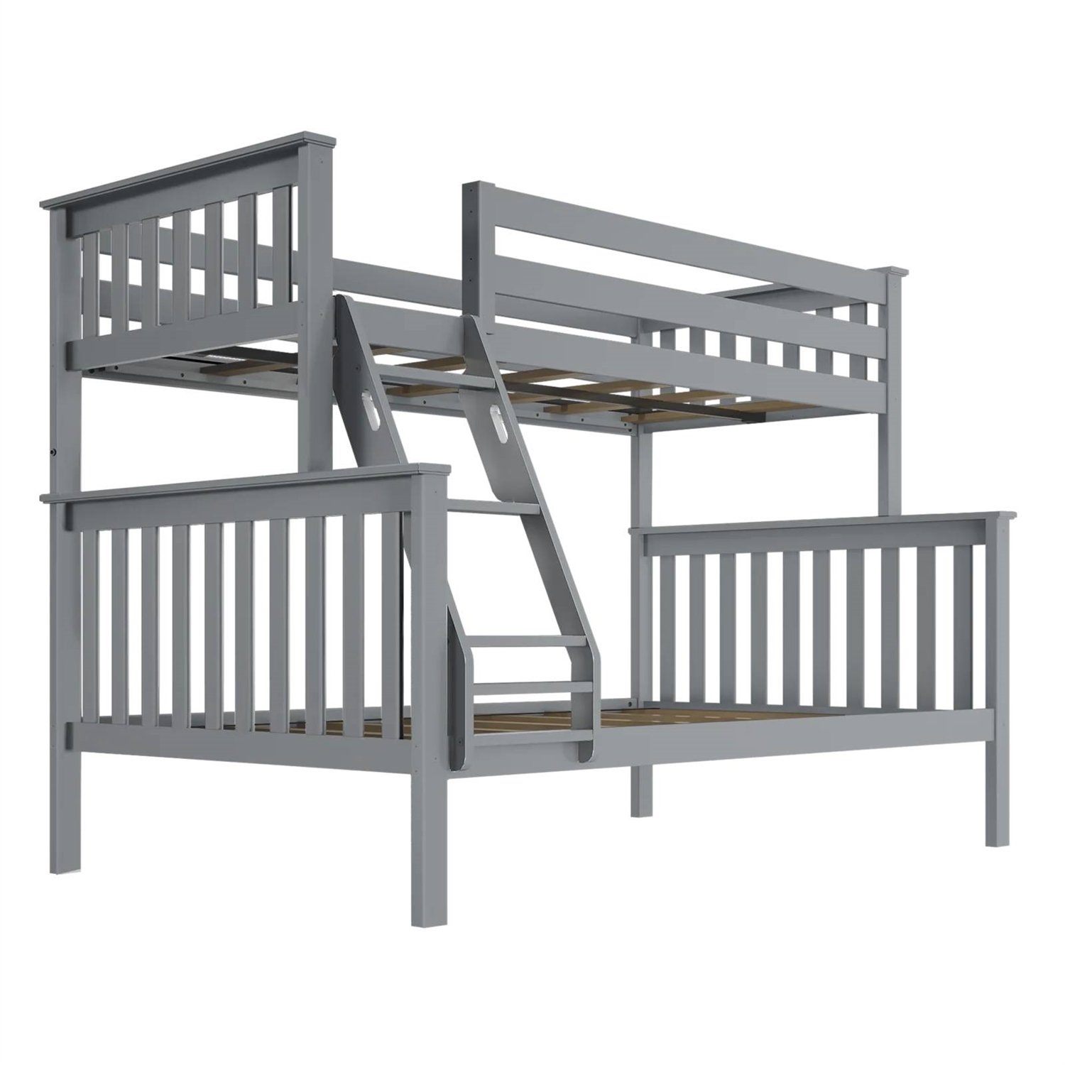 Twin over Full size Solid Wood Bunk Bed in Grey Finish
