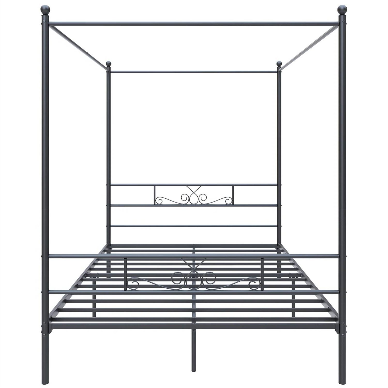 Queen size Four Poster French Country Metal Canopy Bed in Black Finish