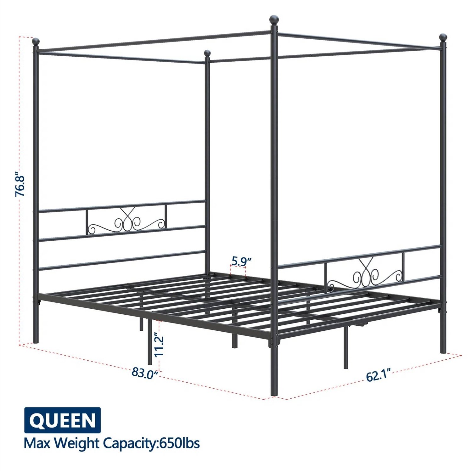 Queen size Four Poster French Country Metal Canopy Bed in Black Finish Queen size Four Poster French Country Metal Canopy Bed in Black Finish Queen size Four Poster French Country Metal Canopy Bed in Black Finish