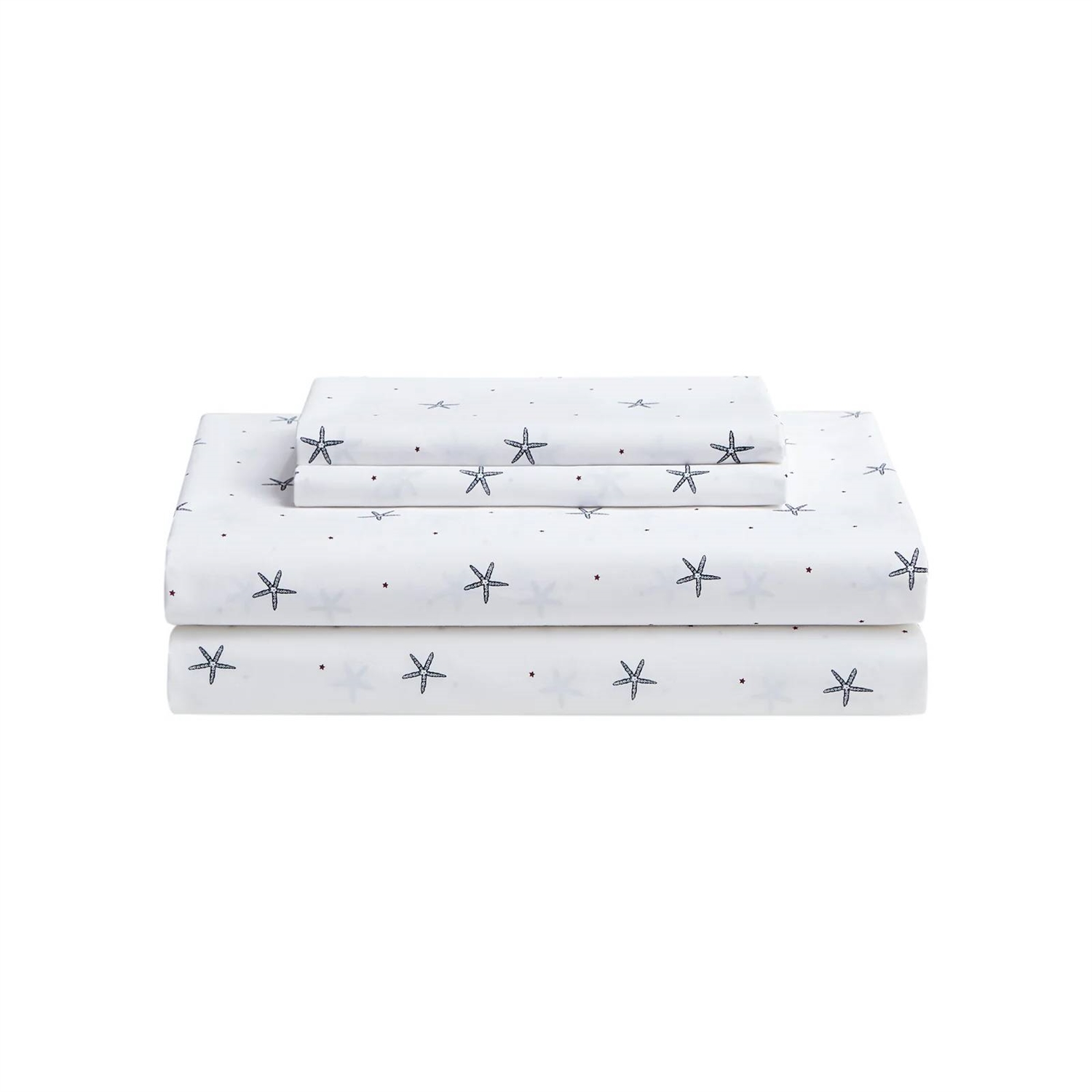 King size Coastal Beach Starfish White Navy Red 100-Percent Cotton Sheet Set