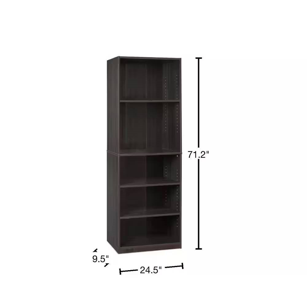 71-inch Tall 5-Shelf Bookcase in Dark Brown Espresso Wood Finish