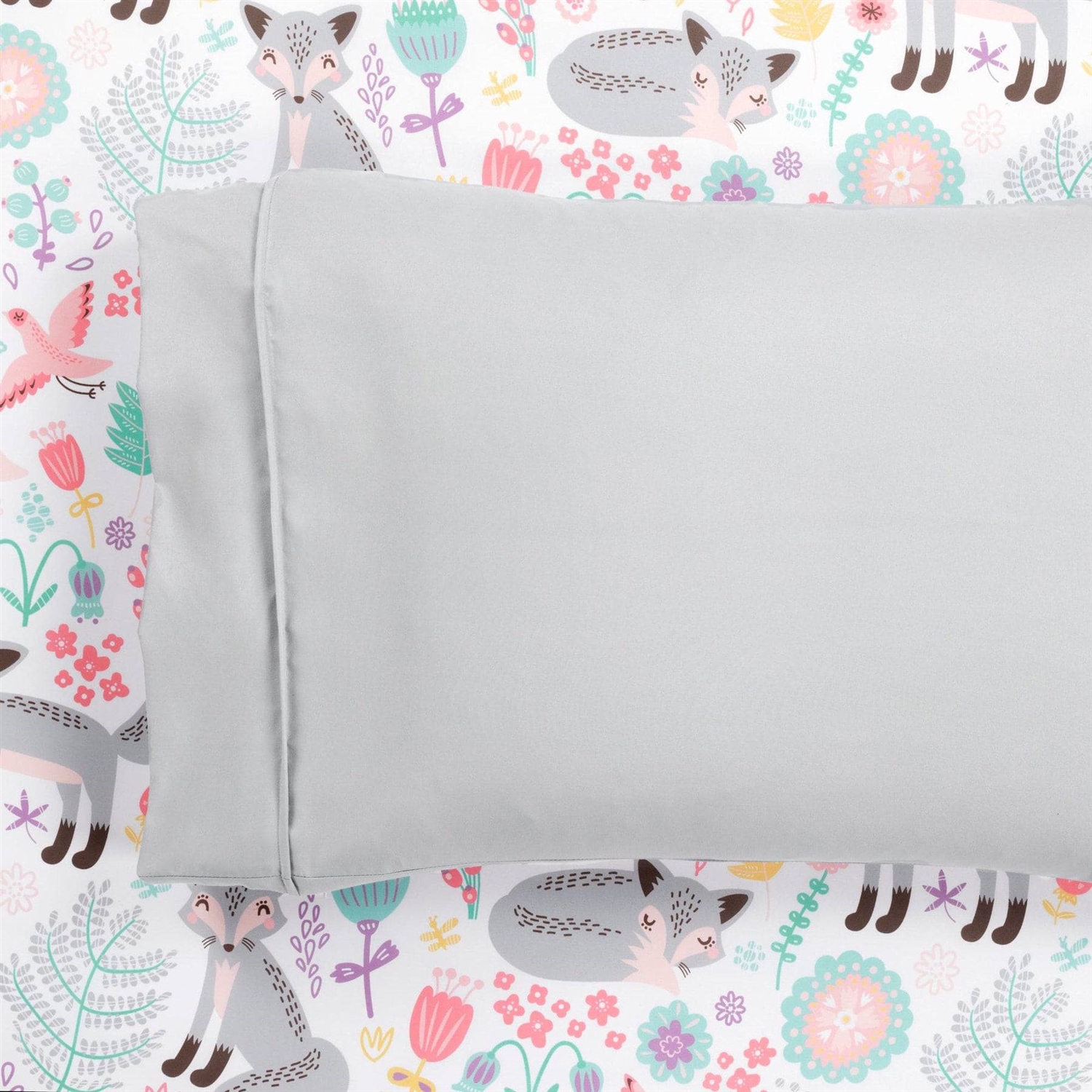 Home > Full size Pink Grey White Teal Floral Fox Birds Soft Polyester 6 Piece Sheet Set