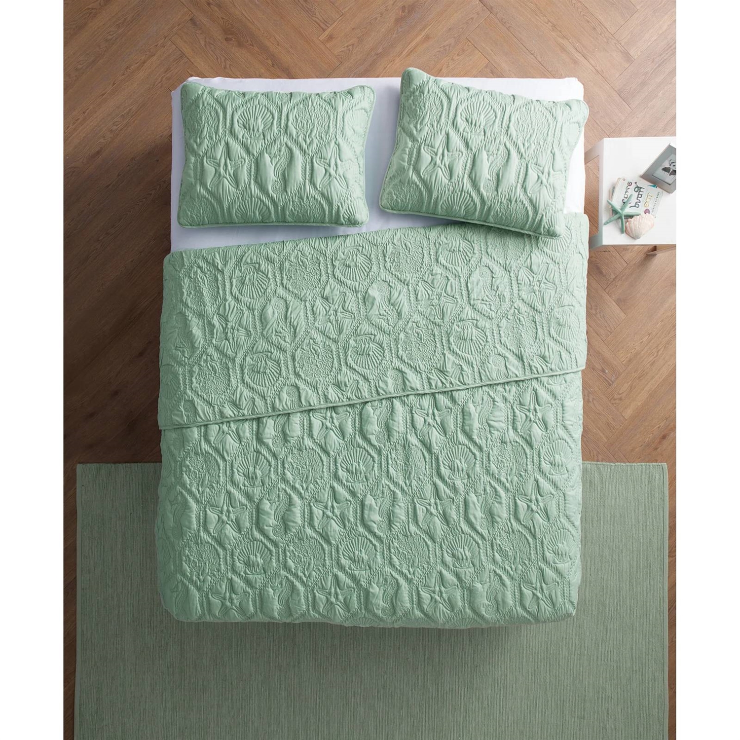 Queen Coastal Beach Starfish Seashell Seahorse Light Green Teal Quilt Set
