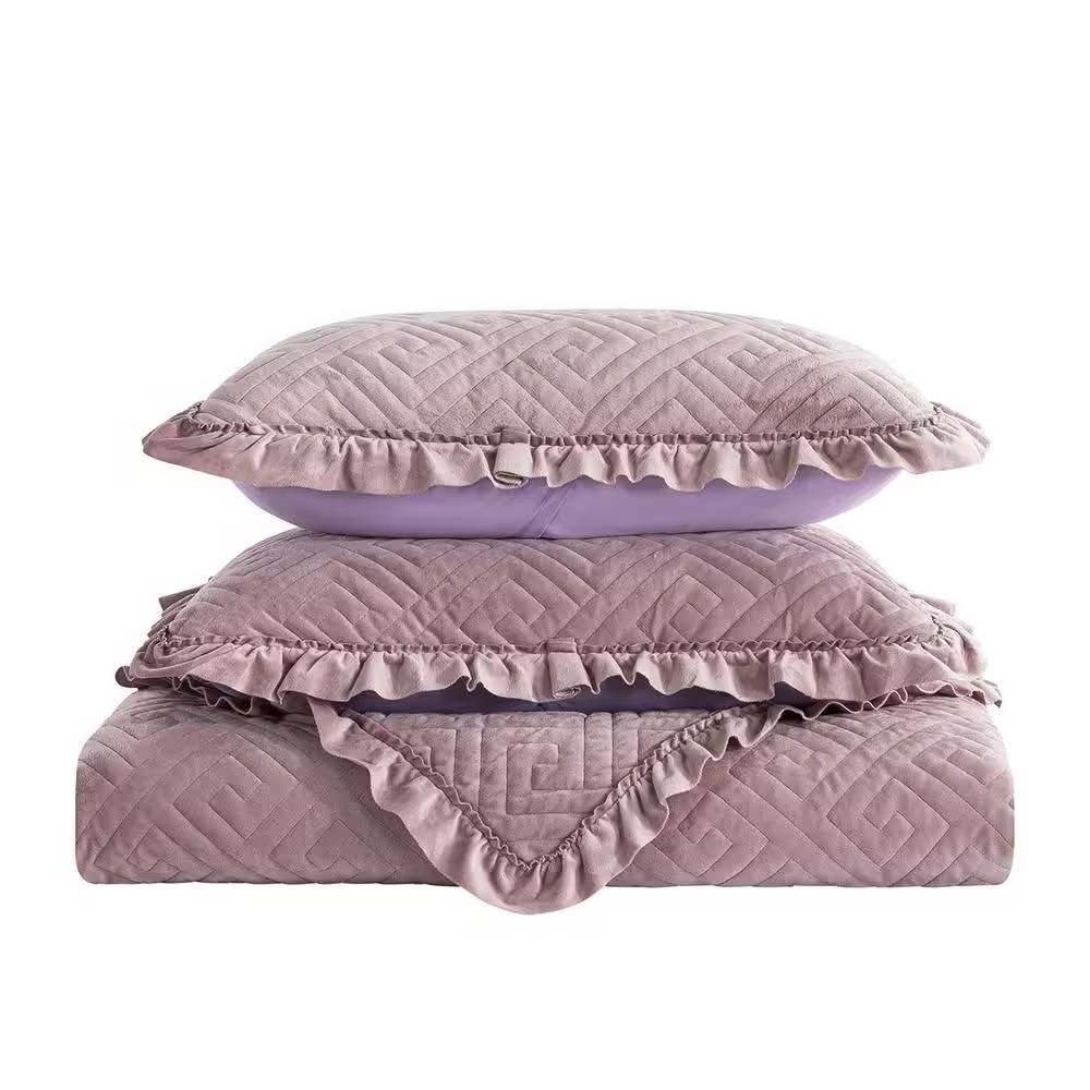 Queen Violet/Rose-Wood Velvet Microfiber Polyester Reversible 3-Piece Quilt Set Queen Violet/Rose-Wood Velvet Microfiber Polyester Reversible 3-Piece Quilt Set Queen Violet/Rose-Wood Velvet Microfiber Polyester Reversible 3-Piece Quilt Set Queen Violet/Rose-Wood Velvet Microfiber Polyester Reversible 3-Piece Quilt Set