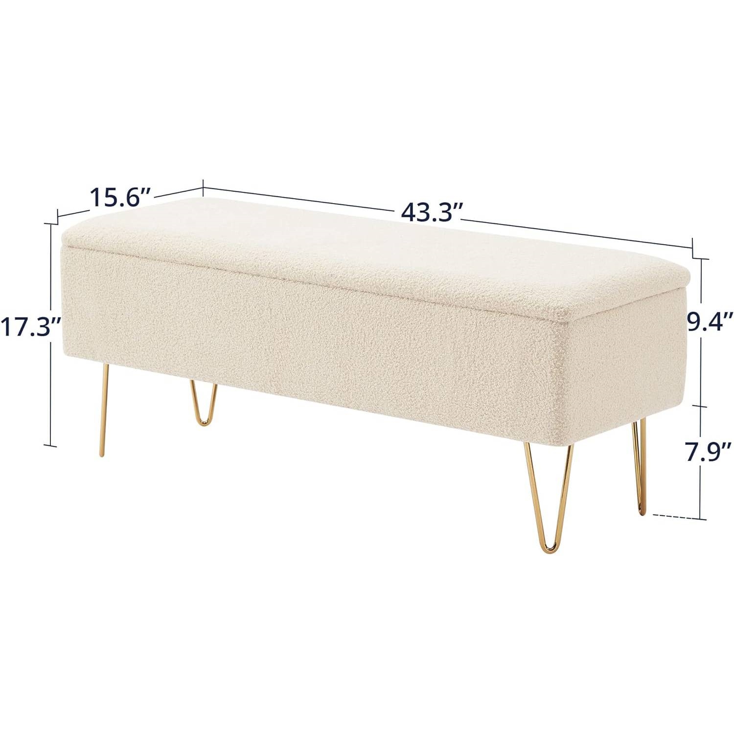 White Sherpa Fabric Upholstered End of Bed Storage Bench with Gold Finish Legs White Sherpa Fabric Upholstered End of Bed Storage Bench with Gold Finish Legs White Sherpa Fabric Upholstered End of Bed Storage Bench with Gold Finish Legs White Sherpa Fabric Upholstered End of Bed Storage Bench with Gold Finish Legs White Sherpa Fabric Upholstered End of Bed Storage Bench with Gold Finish Legs