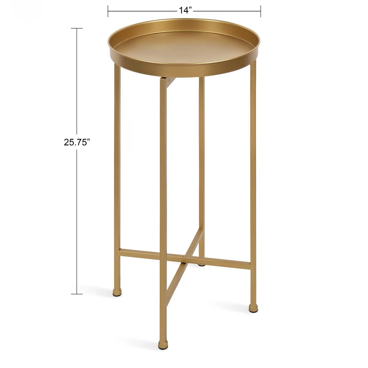 Classic Gold Finish Metal Round End Table Nightstand with Removable Tray Top