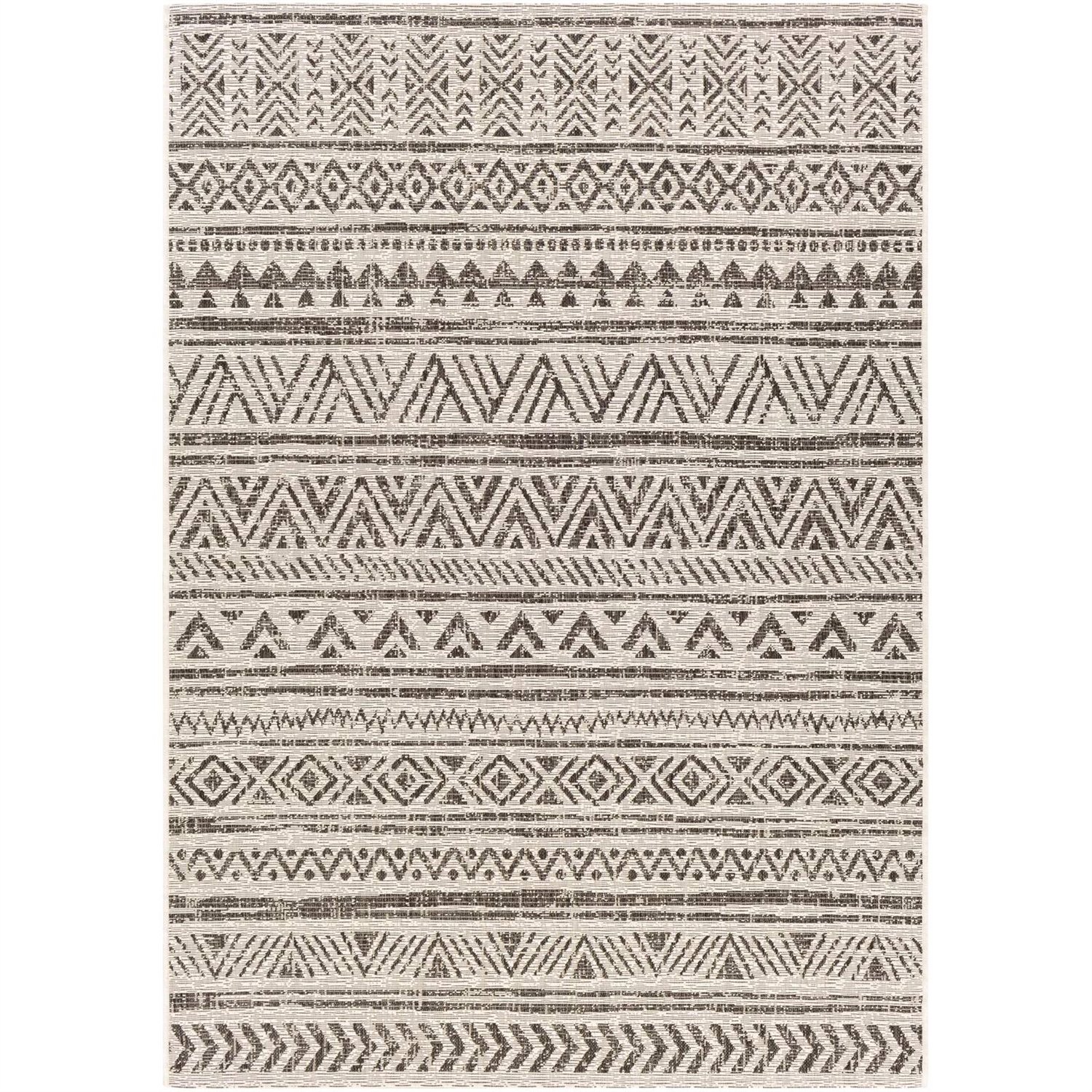 5 ft. x 8 ft. Black Off-White Chevron Coastal Boho Style Indoor Outdoor Area Rug