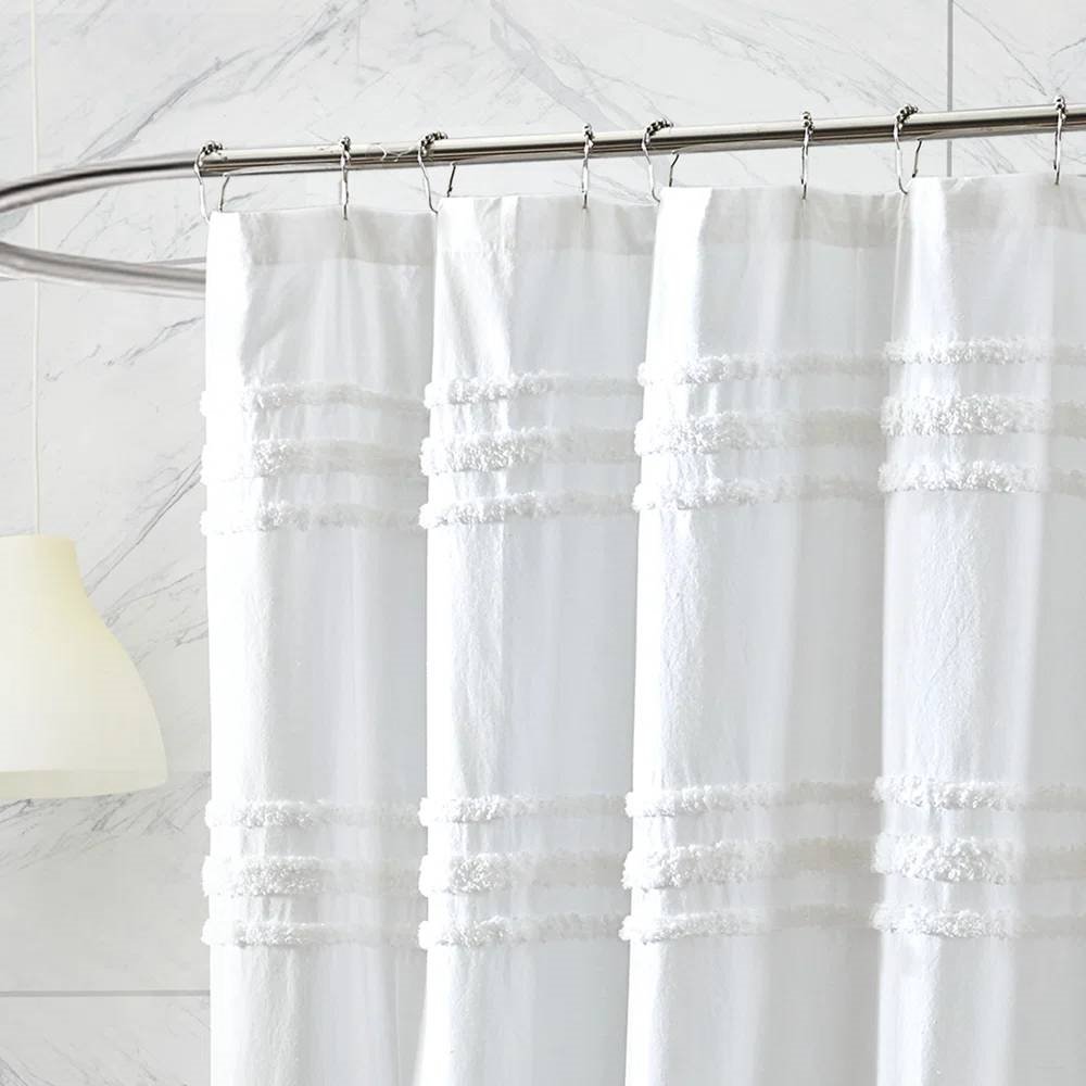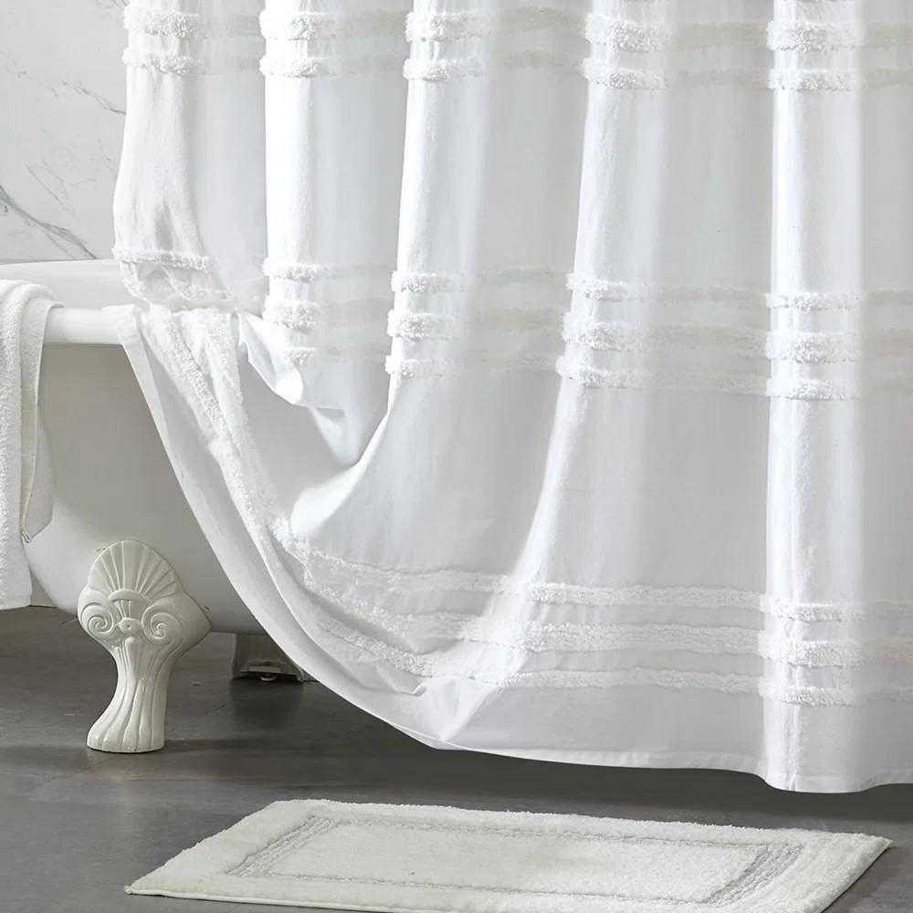 72-inch White Cotton Chenille Stripe Shower Curtain - Machine Washable