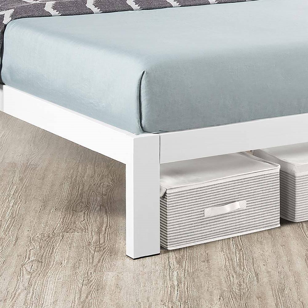 Twin XL size Wide-Slat White Metal Platform Bed Frame with Headboard Brackets