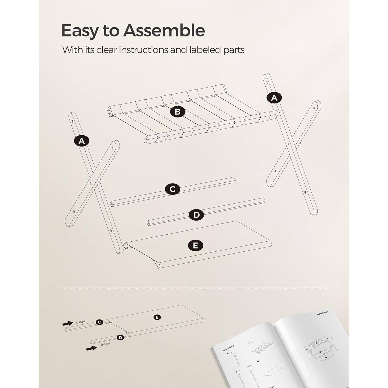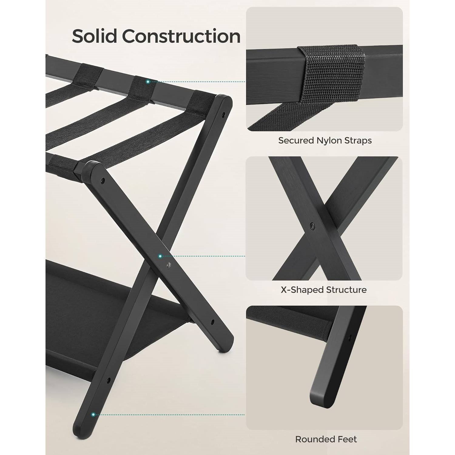 Sturdy Bamboo Luggage Rack in Black Wood Finish with Lower Storage Shelf
