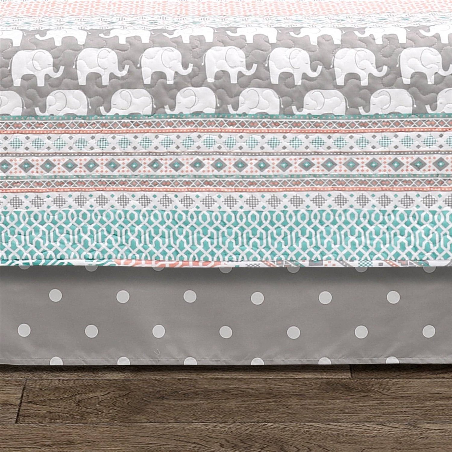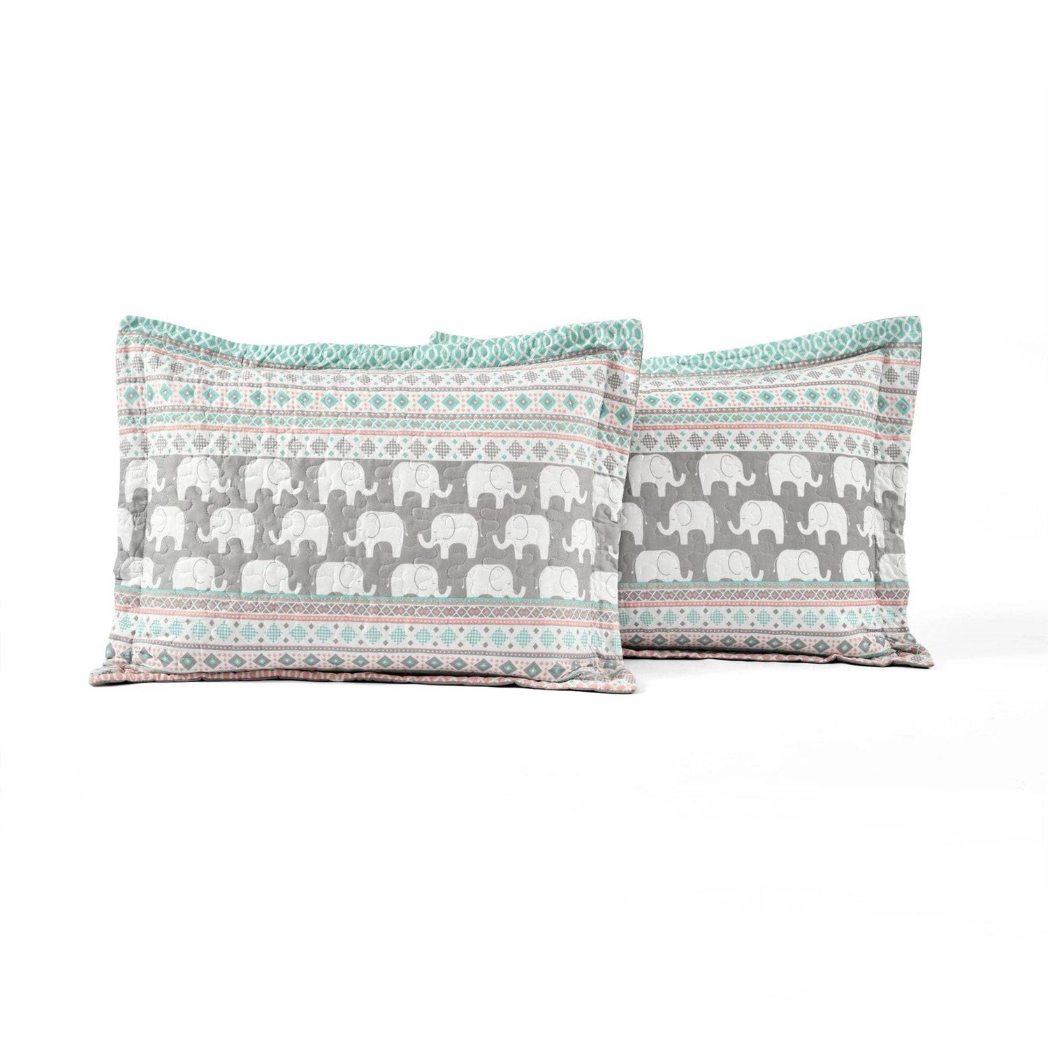 Turquoise Pink Grey Lightweight 6 Piece Elephant Pattern Daybed Cover Quilt Set