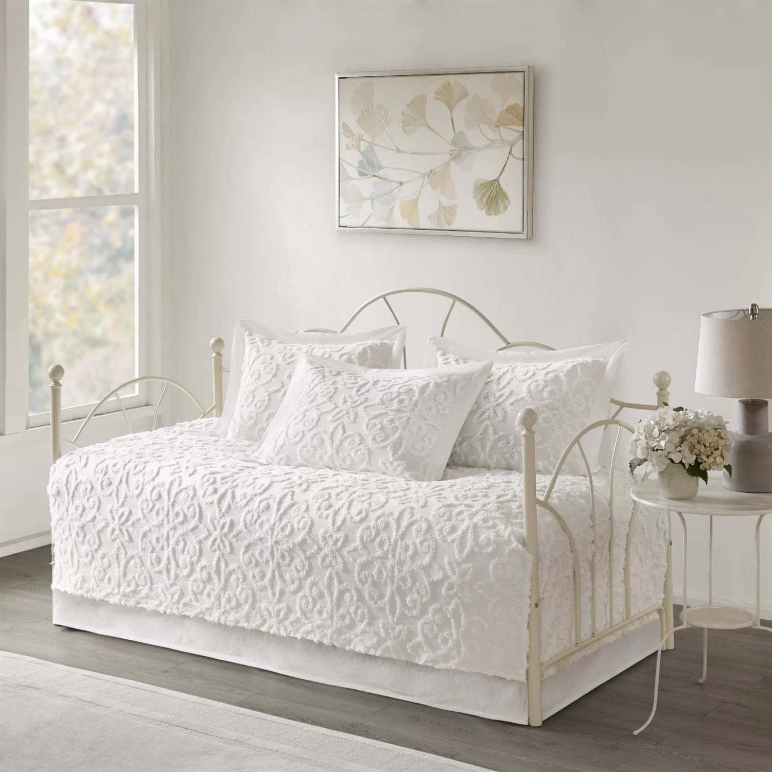 5-Piece French Country White Chenille Medallion Cotton Daybed Cover Bedding Set
