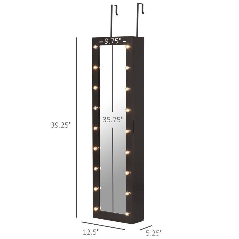 Dark Brown Door/Wall Mounted Jewelry Armoire Cabinet with Mirror and LED Lights