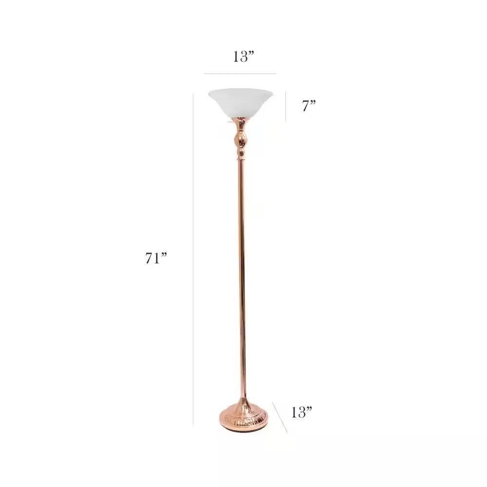 Rose Gold Copper Finish Metal Floor Lamp Torchiere with White Glass Shade