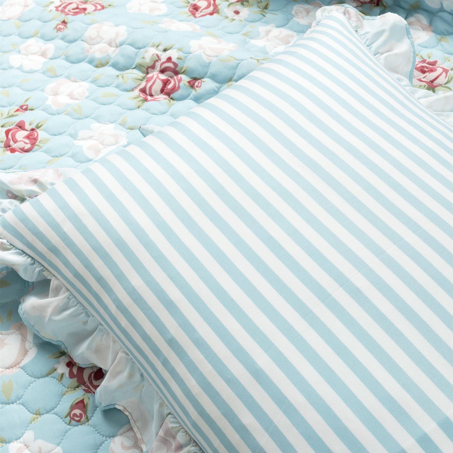 Full/Queen size Vintage Rose Ruffle Edge Light Quilt Set in Blue White and Pink Full/Queen size Vintage Rose Ruffle Edge Light Quilt Set in Blue White and Pink Full/Queen size Vintage Rose Ruffle Edge Light Quilt Set in Blue White and Pink Full/Queen size Vintage Rose Ruffle Edge Light Quilt Set in Blue White and Pink