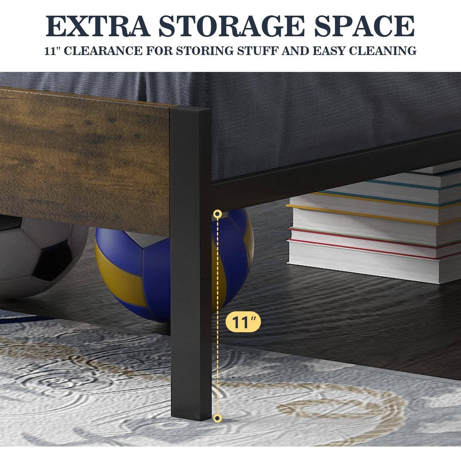 Twin Modern Metal Platform Bed Frame with Rustic Wood Headboard and Footboard