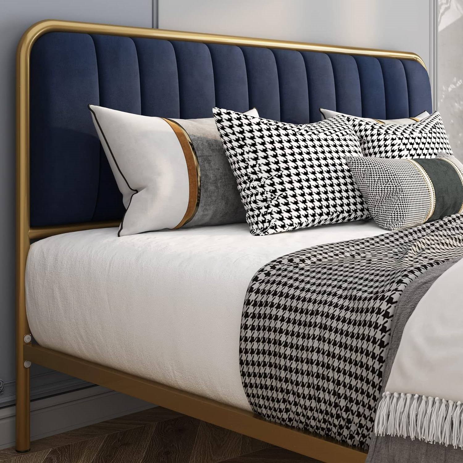 Queen Gold Metal Platform Bed Frame with Navy Blue Velvet Upholstered Headboard Queen Gold Metal Platform Bed Frame with Navy Blue Velvet Upholstered Headboard Queen Gold Metal Platform Bed Frame with Navy Blue Velvet Upholstered Headboard Queen Gold Metal Platform Bed Frame with Navy Blue Velvet Upholstered Headboard Queen Gold Metal Platform Bed Frame with Navy Blue Velvet Upholstered Headboard