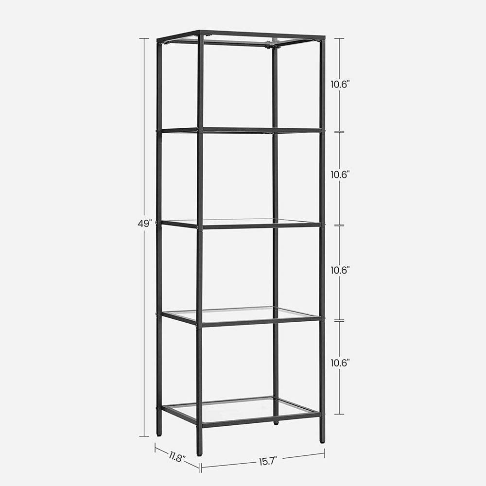 Black Metal Frame Glass Shelf Bookcase 4-Shelves Shelving Unit