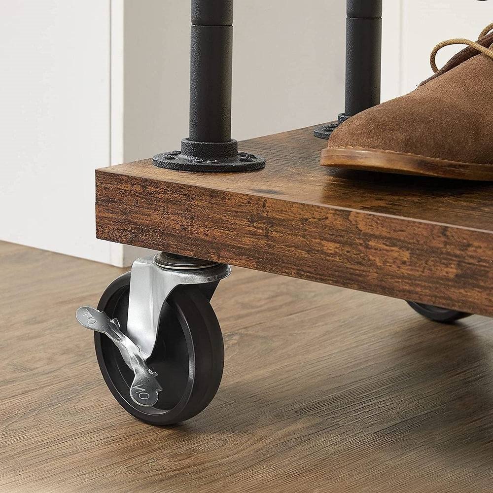 Industrial Metal Pipe Garment Rack with Bottom Shoe Storage Shelf on Wheels