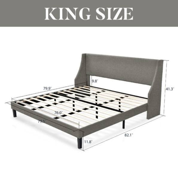 King Size Upholstered Linen Blend Headboard Wingback Platform Bed in Grey King Size Upholstered Linen Blend Headboard Wingback Platform Bed in Grey King Size Upholstered Linen Blend Headboard Wingback Platform Bed in Grey King Size Upholstered Linen Blend Headboard Wingback Platform Bed in Grey King Size Upholstered Linen Blend Headboard Wingback Platform Bed in Grey