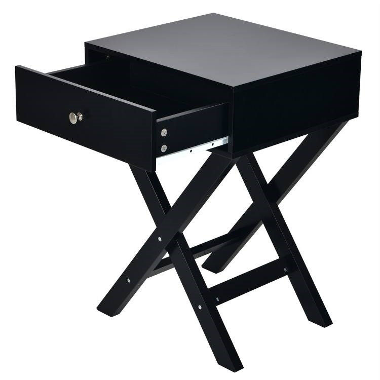 Home > X-Shape 1 Drawer Nightstand End/Side Table Storage in Black