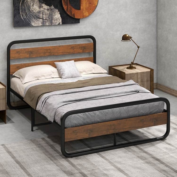 Queen Industrial Wood and Metal Tube Platform Bed with Headboard and Footboard Queen Industrial Wood and Metal Tube Platform Bed with Headboard and Footboard Queen Industrial Wood and Metal Tube Platform Bed with Headboard and Footboard Queen Industrial Wood and Metal Tube Platform Bed with Headboard and Footboard