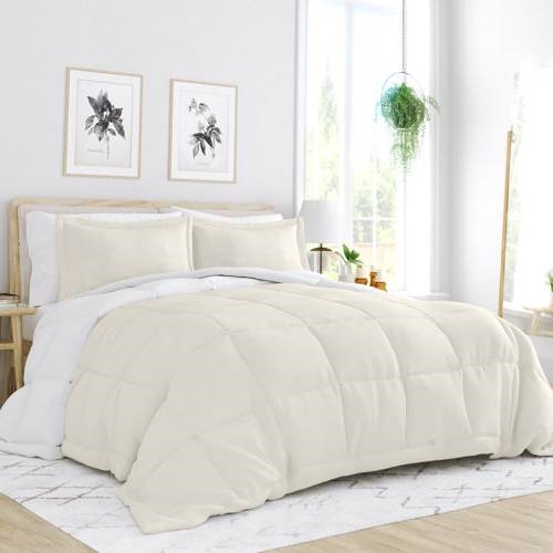 King/Cal King 3-Piece Microfiber Reversible Comforter Set in White and Cream