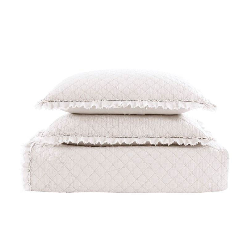 Home > Full Queen White Farmhouse Microfiber Diamond Quilted Bedspread Set Frayed Edges