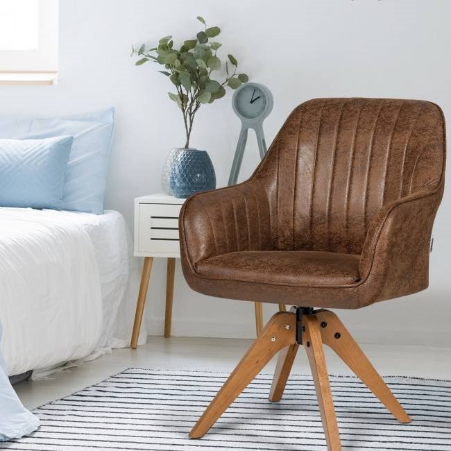 Faux Leather Swivel Accent Chair with Solid Wood Legs - Brown Faux Leather Swivel Accent Chair with Solid Wood Legs - Brown Faux Leather Swivel Accent Chair with Solid Wood Legs - Brown Faux Leather Swivel Accent Chair with Solid Wood Legs - Brown Faux Leather Swivel Accent Chair with Solid Wood Legs - Brown