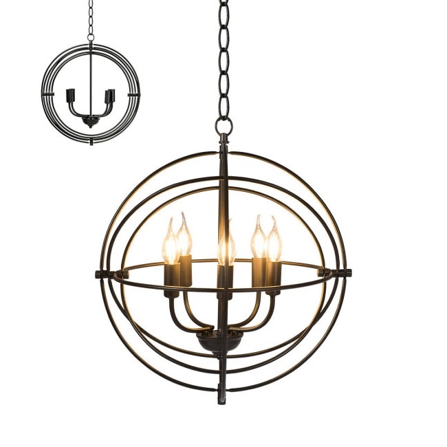 5 Light Brass Rustic Industrial Rotating Metal Chandelier