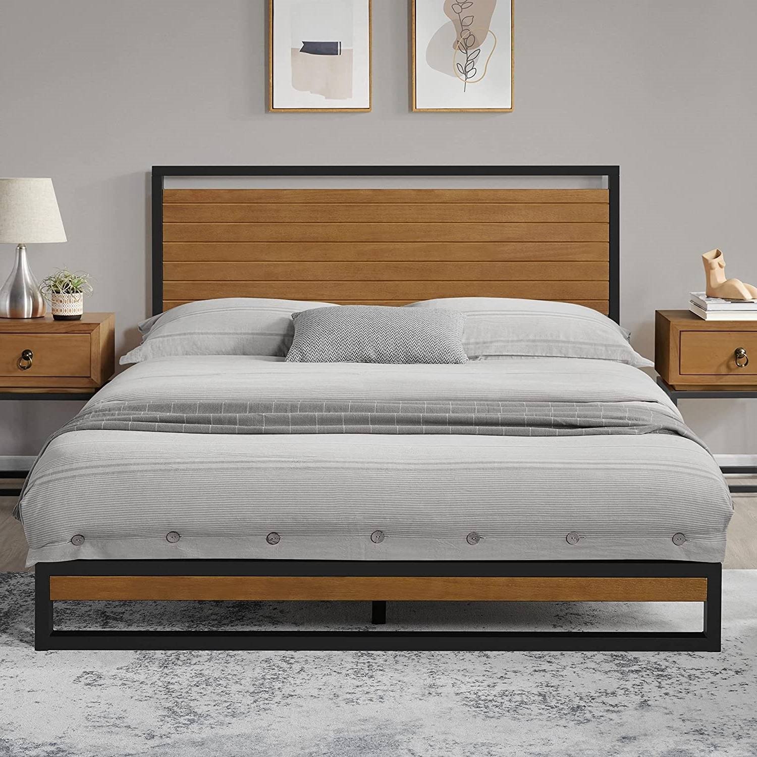Queen size Modern Metal Platform Bed Frame with Solid Brown Wood Slatted Headboard Queen size Modern Metal Platform Bed Frame with Solid Brown Wood Slatted Headboard Queen size Modern Metal Platform Bed Frame with Solid Brown Wood Slatted Headboard Queen size Modern Metal Platform Bed Frame with Solid Brown Wood Slatted Headboard Queen size Modern Metal Platform Bed Frame with Solid Brown Wood Slatted Headboard