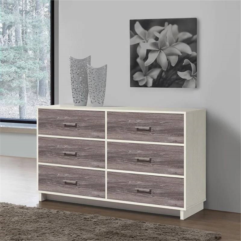 Modern 6-Drawer Dresser in Rustic White Brown Wood Finish