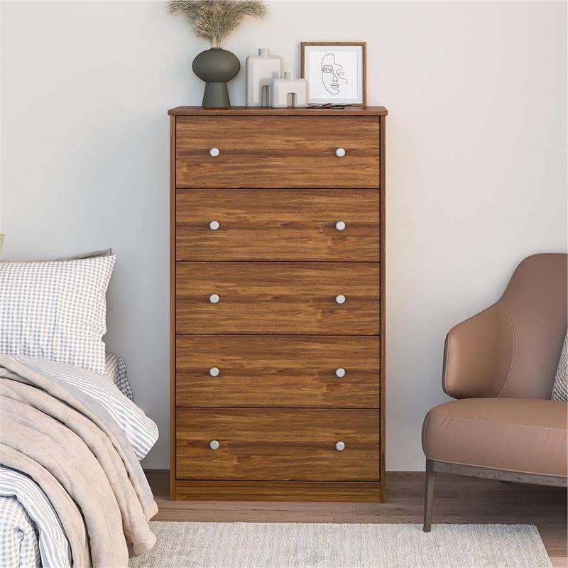 Modern 5-Drawer Bedroom Chest Dresser in Rustic Brown Wood Finish