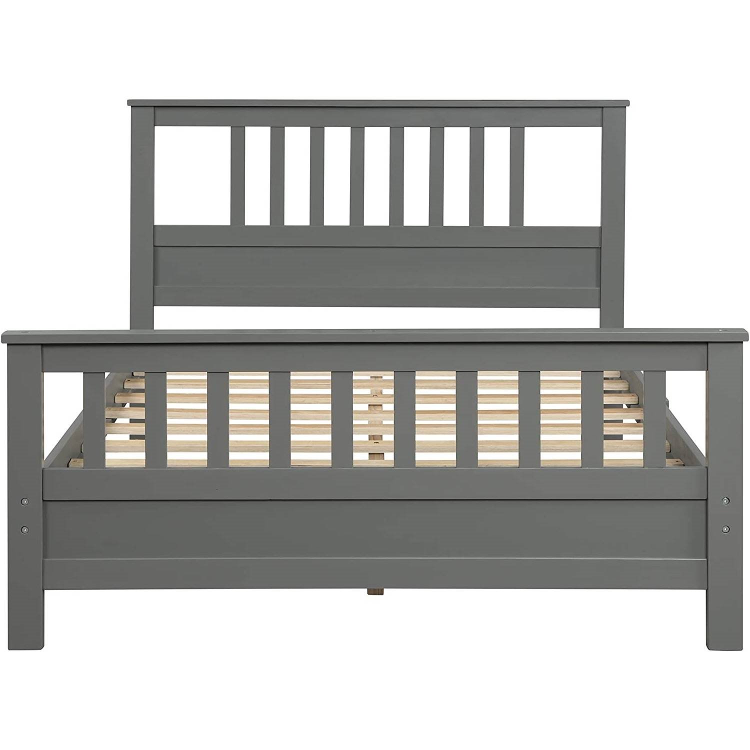 Grey Pine Wood Slatted Platform Headboard Footboard Full Size Bed