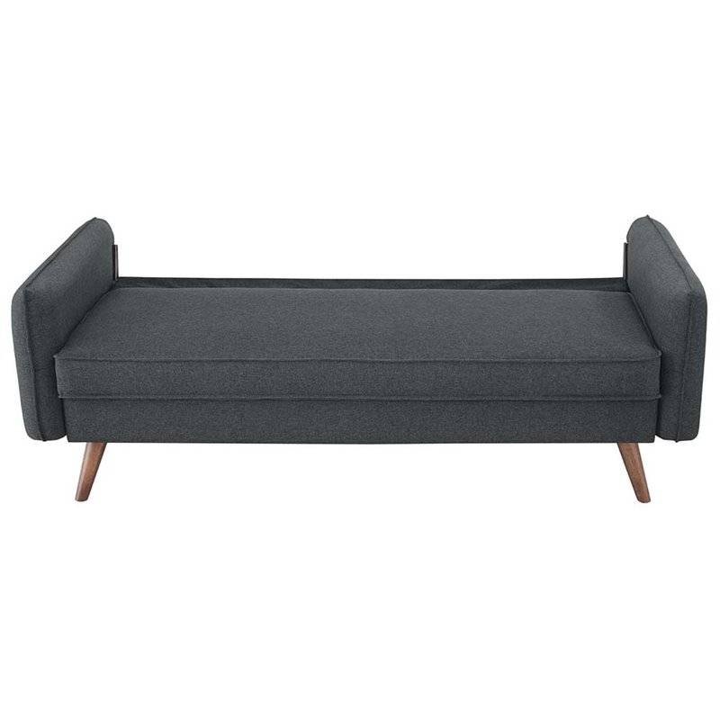 Modern Grey Fabric Upholstered Sofa with Mid-Century Style Wood Legs